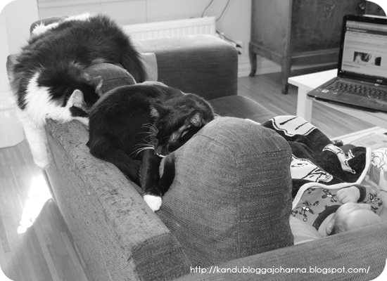 m - Alla tre på bilden sover ju! Det som syns på datorn är bloggerfönstret för att skriva detta inlägg.